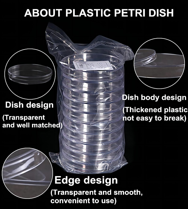 Ideal for laboratory analysis, school science projects, scientific research, seed cultivation, mycology research, and more.These Petri dishes are optically clear with good clarity in microscopy.Petri dishes have a flat growth surface for uniform cell growth without clumping.